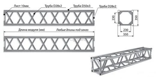 - Длина фермовой конструкции: 4500 мм.