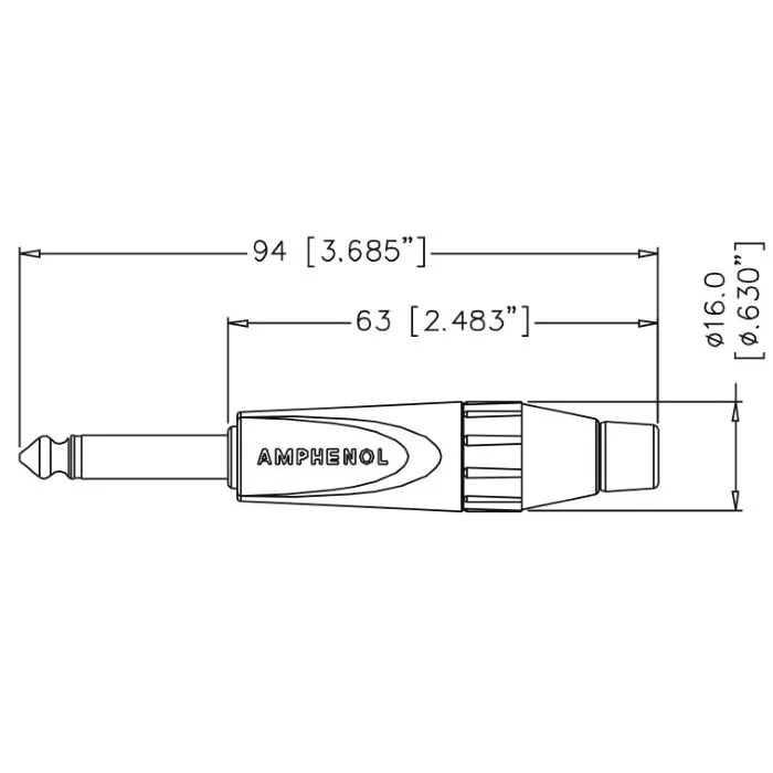 Разъем Amphenol TM2P — моно штекер джек 1/4” с колпачком из термопластика. Прочный металлический корпус с никелевым покрытием. Подходит для кабелей диаметром 3–7 мм. Имеет два прецизионных контакта. Простой в использовании.