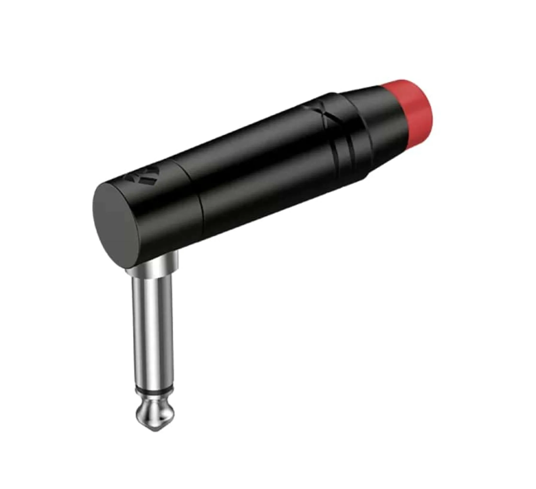 Угловой моно-разъём Roxtone RJ2RPP-RD-BN, 6,3 мм. Чёрный с красным, контакты покрыты никелем.