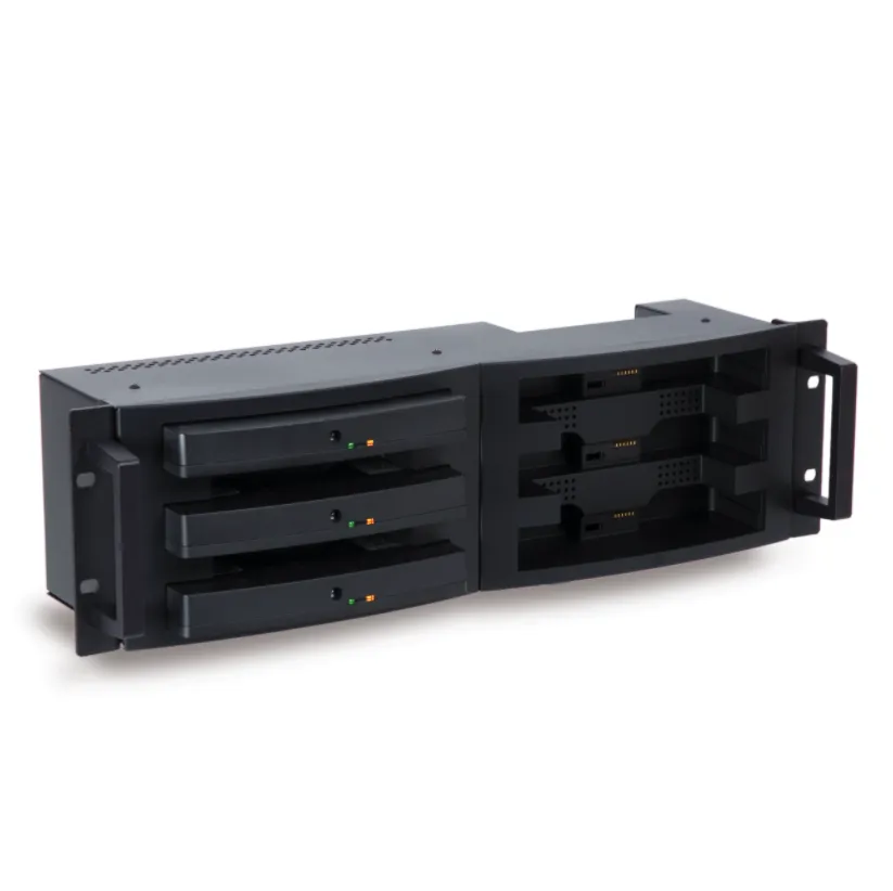 Описание зарядного устройстваЗарядное устройство для аккумуляторов Televic Confidea BP. Поддерживает одновременную зарядку шести аккумуляторов, устанавливается в стойку 19''.