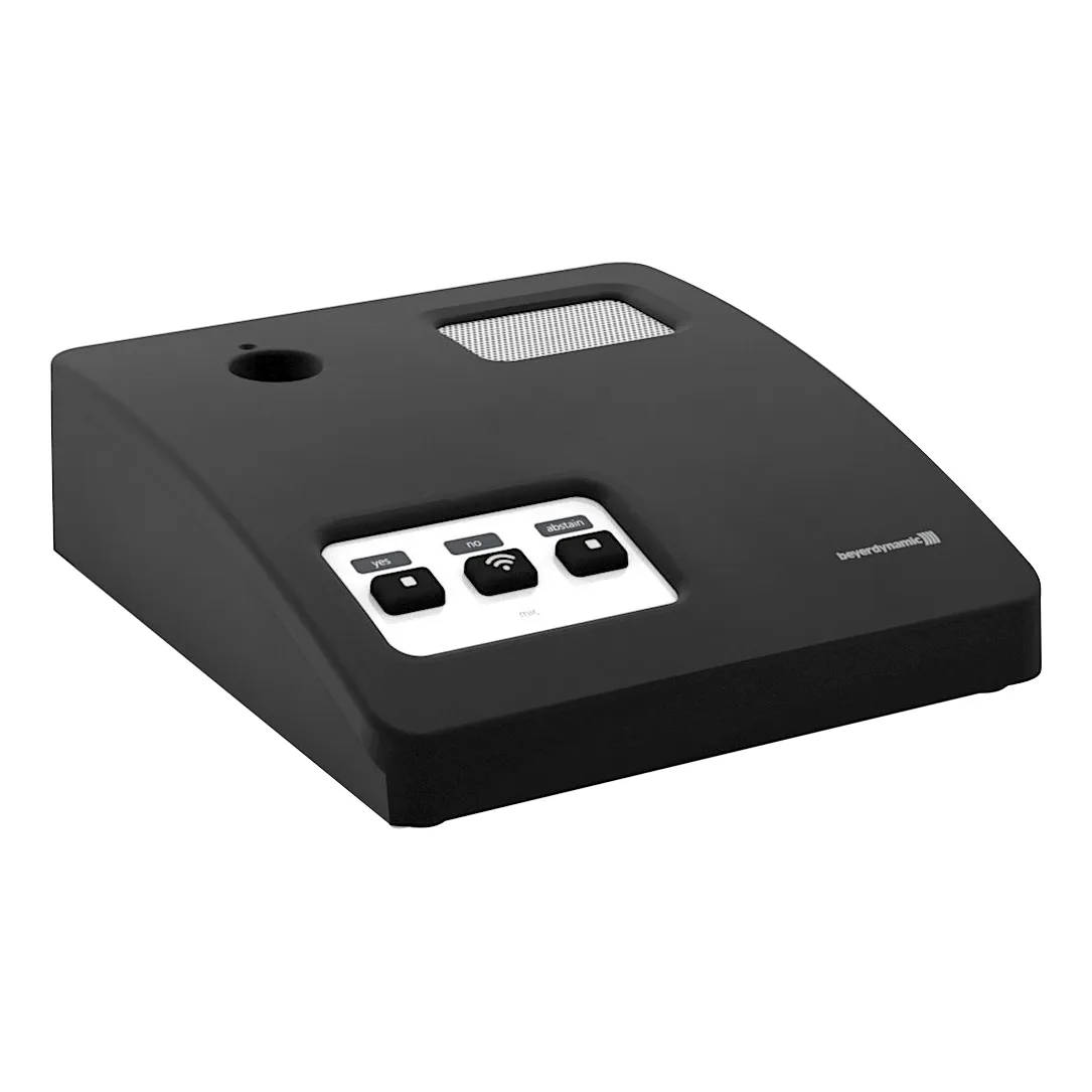 Описание микрофонного пульта Beyerdynamic Quinta MU 21 VМикрофонный пульт Beyerdynamic Quinta MU 21 V оснащён одной кнопкой для включения и выключения микрофона и двумя дополнительными кнопками для голосования. Устройство поддерживает функцию Direct Spread Spectrum (DSSS) для защиты от помех и несанкционированного прослушивания. Микрофонный блок имеет три выбираемые полосы частот (2.4 / 5.2 / 5.8 GHz) и возможность автоматического или ручного изменения частотного отклика. Пульт обладает цифровым шифрованием и обеспечивает безопасное голосовое общение.