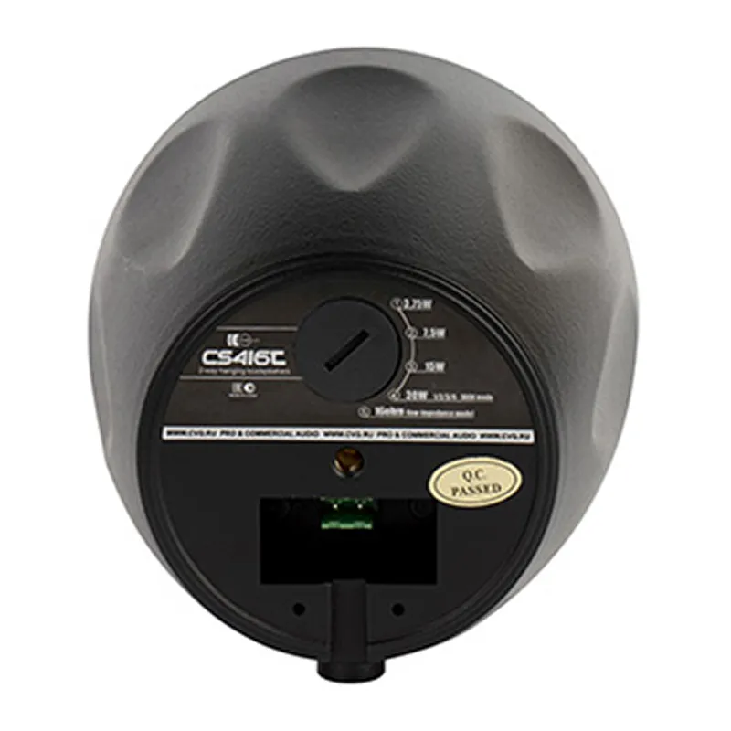 CVGaudio CS416TBl — профессиональная акустическая система для общественных помещений с высокими потолками. Двухполосная модель с вуфером 4” и купольным твитером 1”. Компактный корпус из ABS-пластика. Работает в режимах 100V и low-impedance. Мощность регулируется селектором. Подключение через разъём EuroBlock. Идеальна для магазинов, ресторанов, офисов и других пространств.