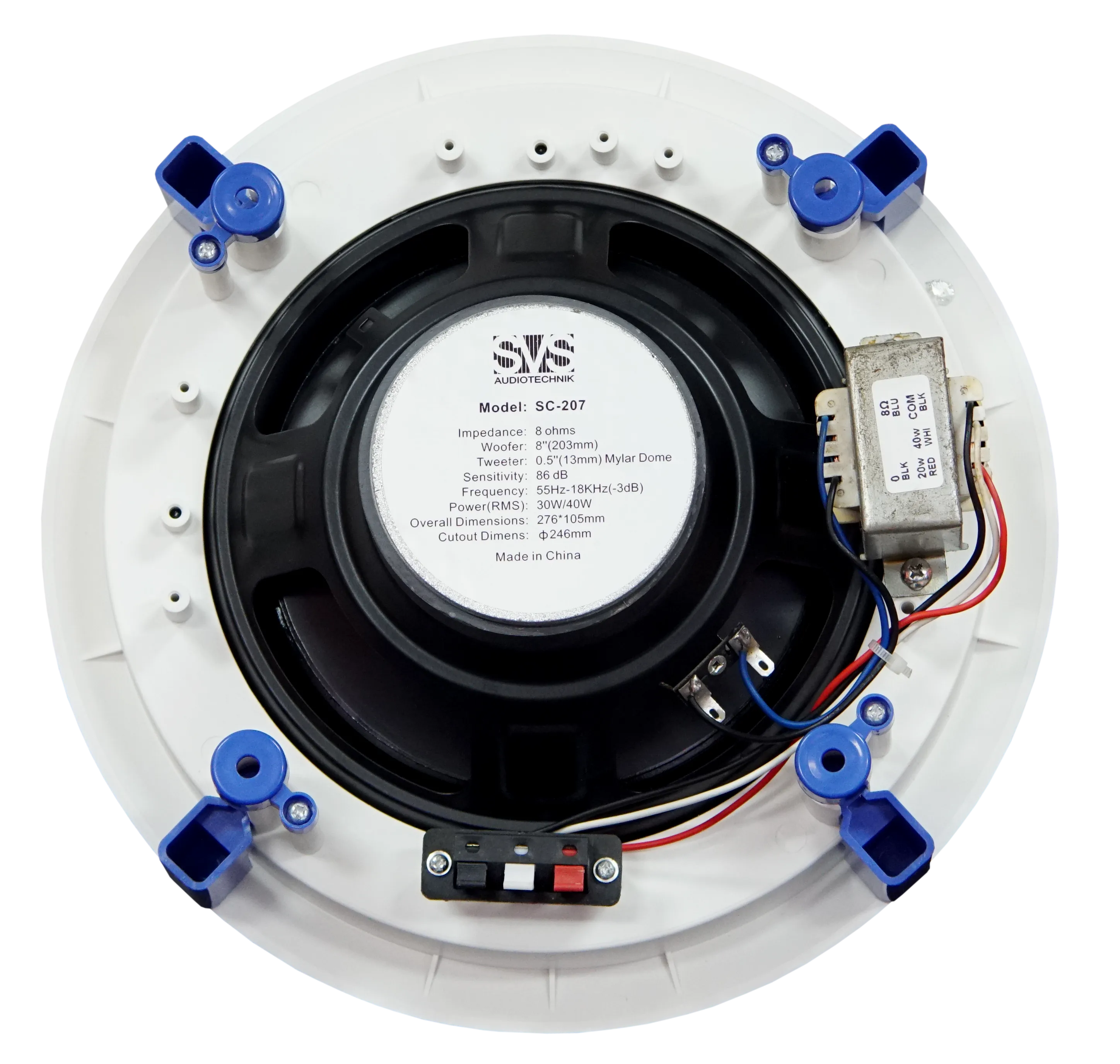 Громкоговоритель потолочный 8", 20/40 Вт, 8 Ом, 70/100В, 88дБ, 55-18000Гц, монтажное отверстие диам 246мм, габариты: диаметр 276мм, высота 105ммСпецификация: