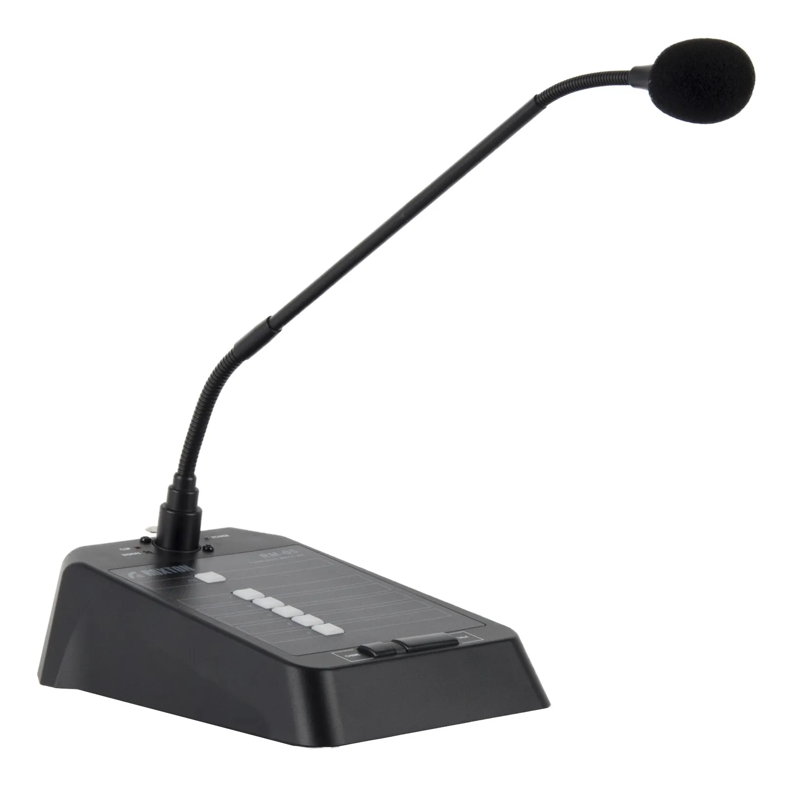 Описание микрофона Roxton RM-05Roxton RM-05 — настольный микрофон с селектором каналов для управления до 5 зон в системах AX/MX. Используется для речевого оповещения и музыкальной трансляции, совместим с сериями AX и MX. Имеет пластиковый корпус настольного исполнения.