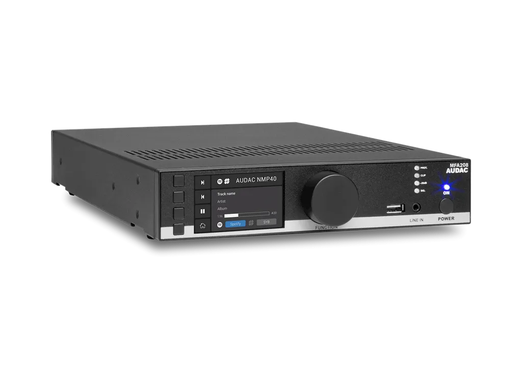 Описание усилителя Audac MFA208Audac MFA208 — это компактный трансляционный усилитель мощности для систем оповещения и озвучивания. Работает от сети переменного напряжения 100–240 В AC. Имеет максимальную выходную мощность 2х 40 Вт (стерео) в режиме 4 Ом или 2х 20 Вт (стерео) в режиме 8 Ом, а также поддерживает подключение трансформаторных громкоговорителей для работы в линии 70/100 В с выходной мощностью 80 Вт (Bridge).