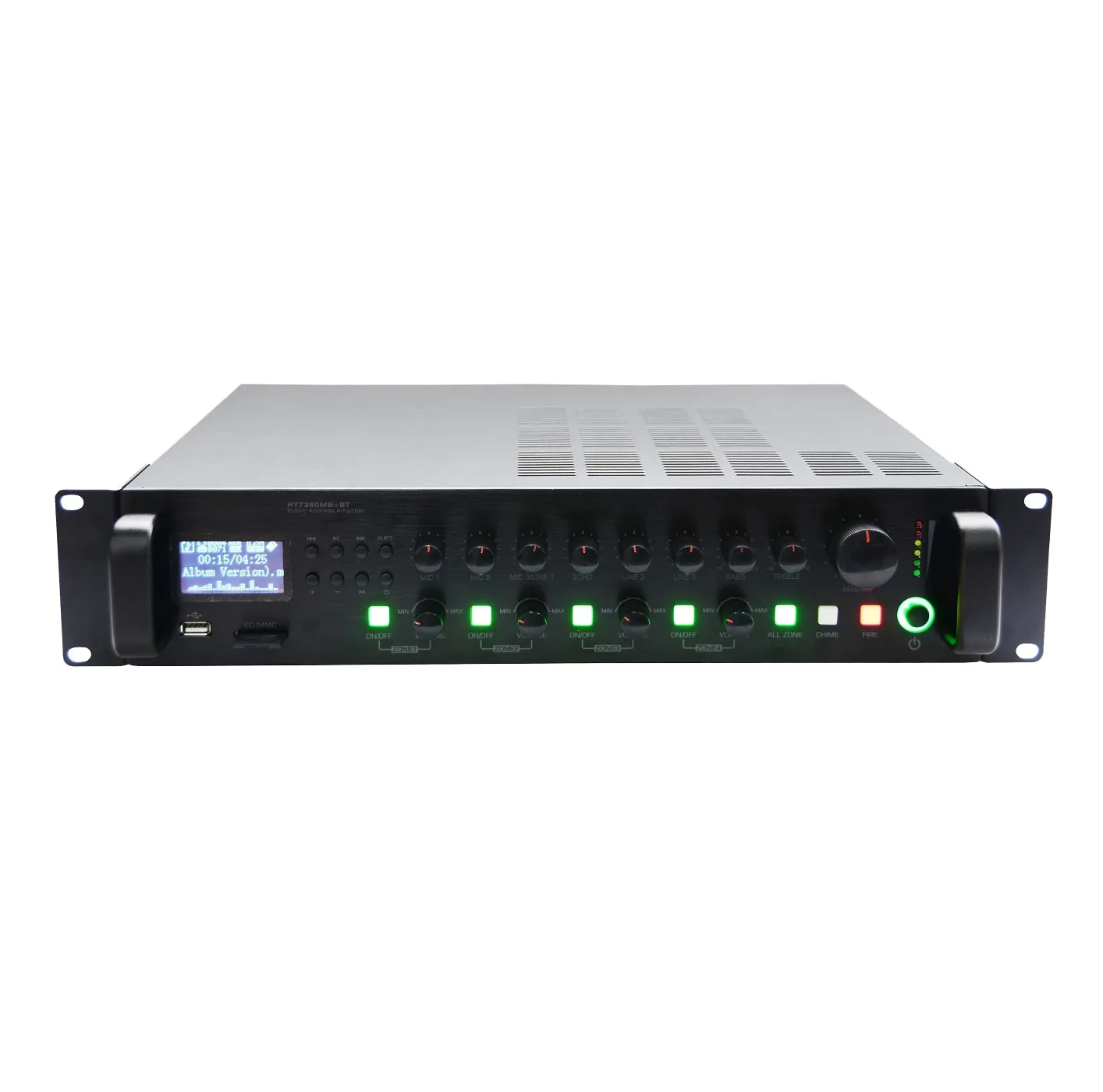 Радиоузел SVS Audiotechnik MA-240 PRO — это трансляционный радиоузел на 4 регулируемые зоны. Мощность усилителя — 240 Вт. Поддерживает MP3, USB, FM, SD Card и Bluetooth. Имеет клавиши CHINE и FIRE, внешнюю Bluetooth-антенну и приоритетные входы для аварийного оповещения.