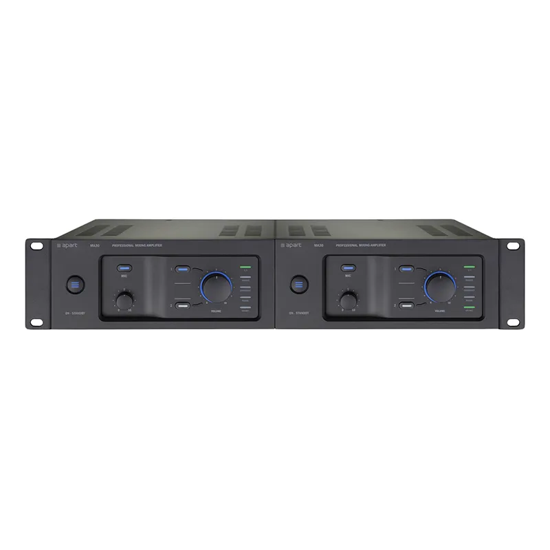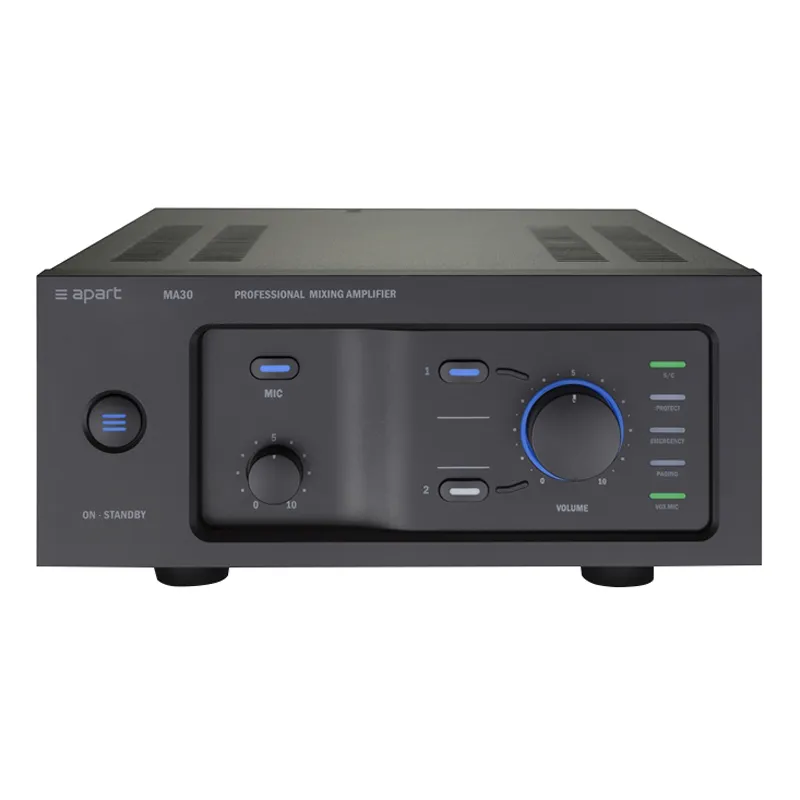BIAMP MA30 — простой и надёжный микширующий усилитель. Инженеры Apart Audio создали интуитивно понятный интерфейс. Регулятор громкости на передней панели — большой и заметный благодаря LED-подсветке.