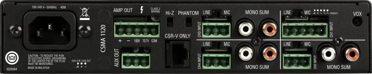 JBL CSMA 180 — инсталляционный микшер с усилителем для коммерческого использования. Он оснащён четырьмя входными каналами (один микрофонно-линейный и четыре стереосуммы RCA) и одним выходом. Мощность устройства составляет 80–120 Вт, возможна работа на линию напряжением 70/100 В.