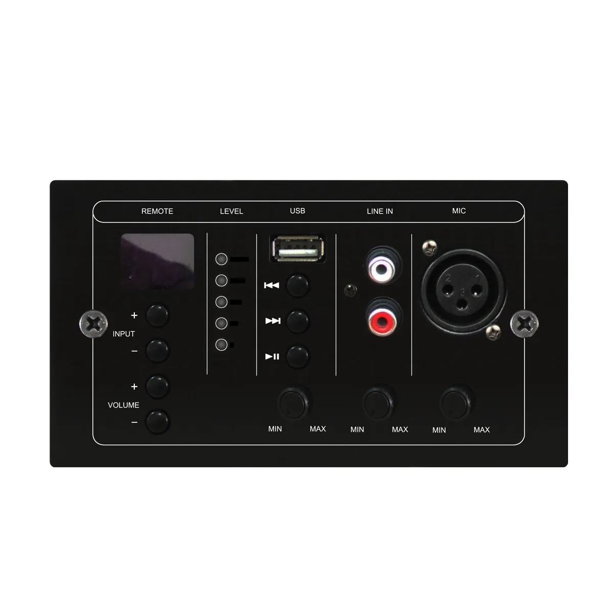 Описание DSPPA MAG-808CВыносная панель управления DSPPA MAG-808C позволяет подключать внешние источники сигнала. Имеет входы для микрофона, линейного сигнала и USB с независимой регулировкой громкости каждого входа. Поддерживает воспроизведение MP3-файлов с USB. Индикация режимов работы показывает уровень громкости и источник сигнала. Может быть удалена от блока управления MAG-808 до 300 метров. Питание получает от блока MAG-808.