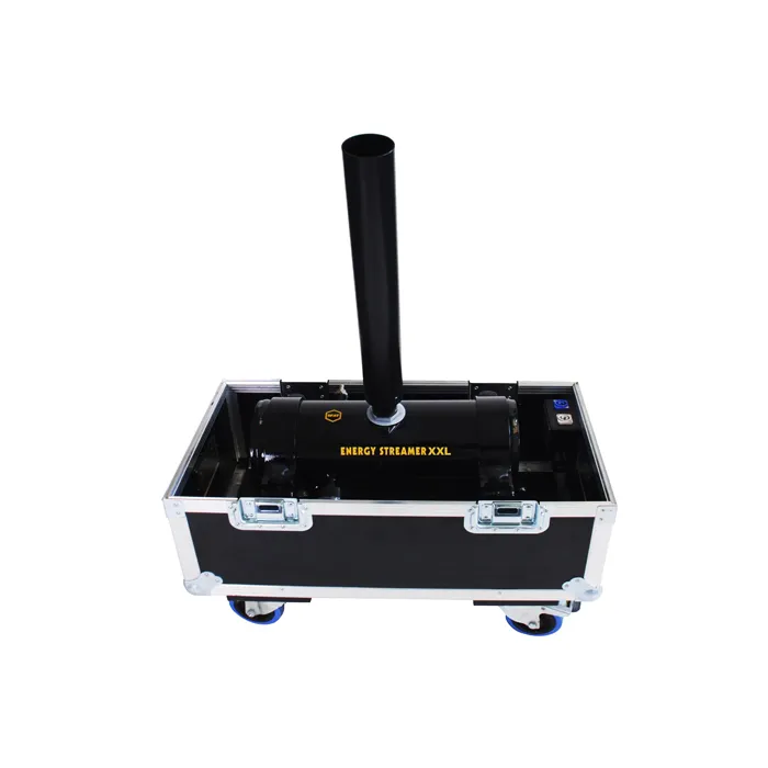 SFAT ENERGY STREAMER XXL. Принцип действия - использование сжатого воздуха или СО2, закачиваемого в промежуточный баллон высокого давления с электромагнитным клапаном. Один ствол. Требуется компрессор на 8бар. Выброс расходного материала на высоту 20-45м. Производительность - до 1 кг. расходного материала (конфетти, серпантин, футболки, шарики для пинг-понга и т.п.). Опции: DMX-модуль, проводной контроллер, транспортировочный кейс. Масса: 98кг, габариты: 105х60х140см. IP 55.Характеристики и возможности