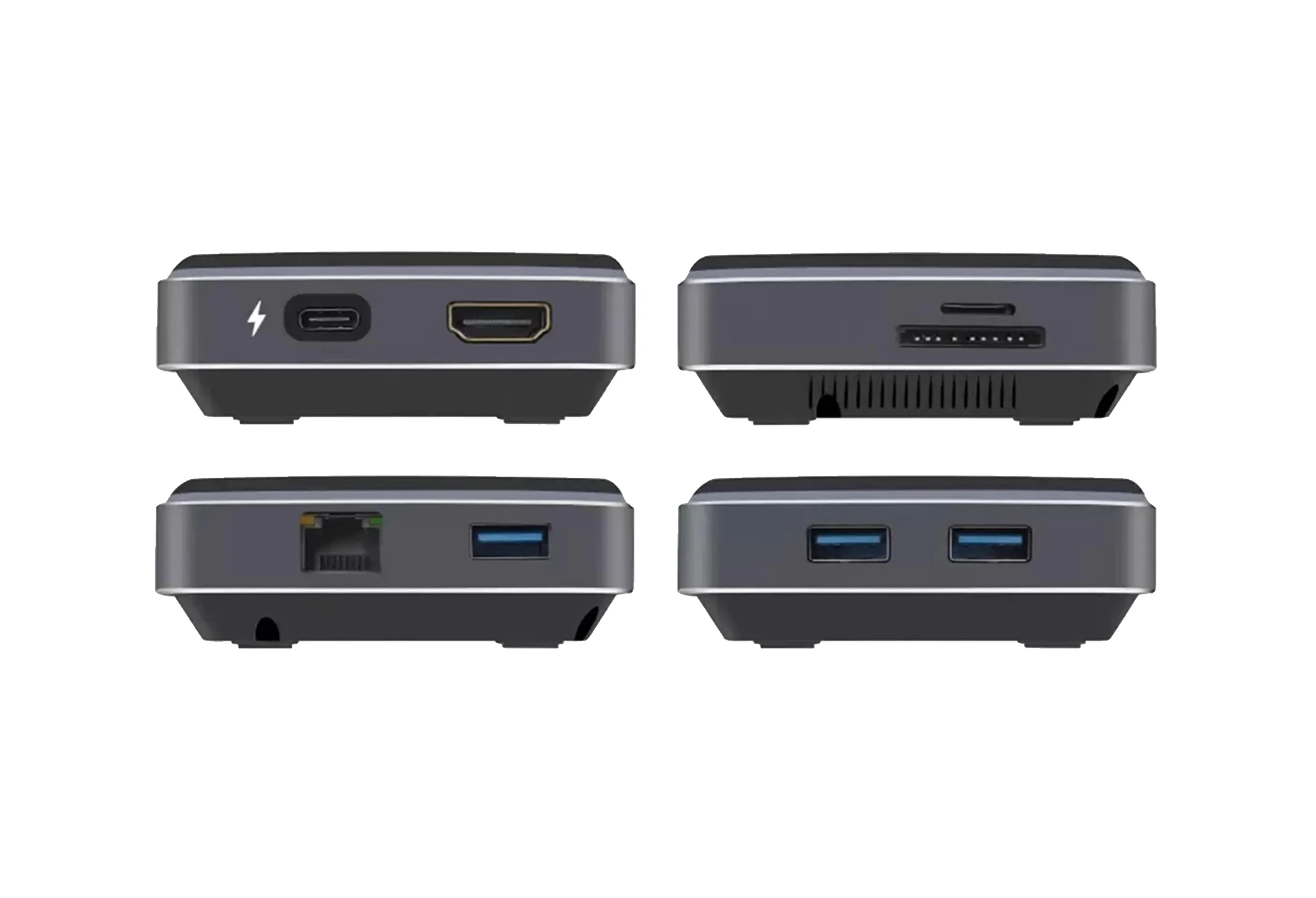 Основные функции: HDMI-выход, USB Type-A порты (USB 3.0), чтение карт SD и TF, гигабитный Ethernet, USB-C порт с поддержкой Power Delivery.