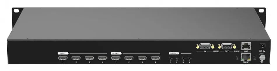 4x4 Digis — устройство с поддержкой 4K, частотой 30 Гц и цветовым форматом 4:4:4. Есть HDMI 1.4, четыре де-эмбеддера, HDCP 1.3, RS232 и возможность управления с пульта. Поддерживает TCP/IP с графическим интерфейсом.