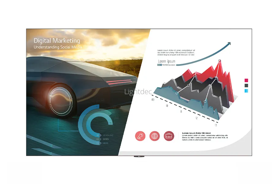 Светодиодный экран "все в одном" со встроенным динамиком.Светодиодный экран LG серии LAEC "все в одном" имеет два размера экрана: 136-дюймовый и 163-дюймовый. Серия LAEC предлагается в виде пакета "все в одном", включающего встроенный контроллер и встроенный динамик. Благодаря этому устройству не требуется подключение контроллера или настройка модулей, что устраняет предубеждение о том, что светодиодные дисплеи трудно и сложно устанавливать. После простого процесса установки достаточно включить экран с помощью пульта дистанционного управления, как домашний телевизор.
