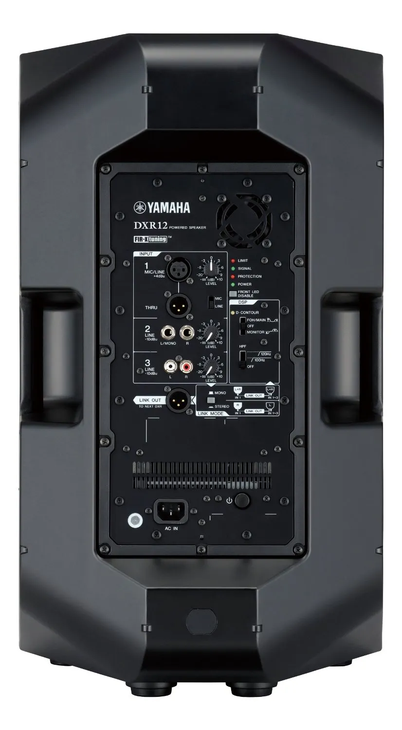 Yamaha DXR12 — активная акустическая система с качественным звуком и прочной конструкцией. Система оснащена усилителями класса D и обеспечивает мощность 1100 Вт. Встроенный цифровой кроссовер FIR-X улучшает звук. D-CONTOUR обеспечивает стабильность звука при любой мощности. Есть микшер для подключения разных источников звука. Корпус из прочного полимера гасит вибрации. Диаметр излучателя — 12 дюймов, частотный диапазон — 52–20000 Гц. Цвет — чёрный.