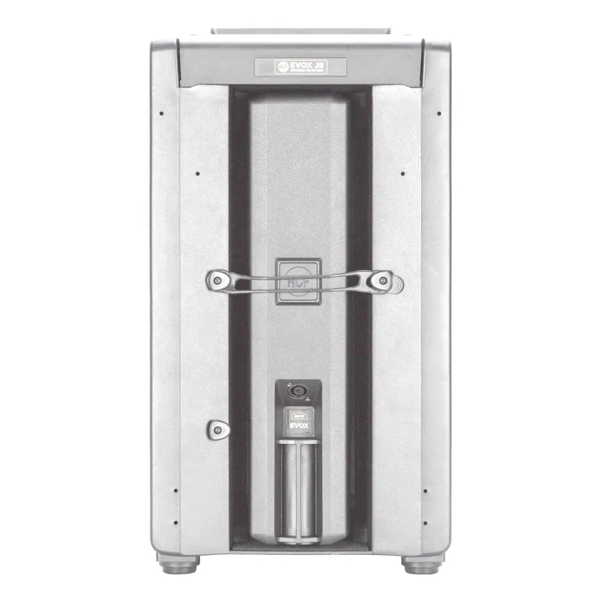 Портативный комплект акустики RCF EVOX J8 W состоит из активного сабвуфера и пассивного сателлита, выполненного по принципу линейного массива и представленного в виде звуковой колонны, которая закрепляется на верхней панели базы (саба) при помощи телескопического штатива. Открепленный сателлит для удобства транспортировки размещается в специальном отсеке внутри сабвуфера, оснащенного удобной интегрированной ручкой. Встроенный двухканальный усилитель с номинальной мощностью 700 Вт (пиковая 1400 Вт) работает в классе D, а кроссовер производит разделение на две частотные полосы на границе 2200 Гц. Комплект работает в частотном диапазоне от 40 Гц до 20000 Гц, при этом высокочастотную полосу воспроизводят установленные в сателлите восемь 2-дюймовых спикеров с дюймовой катушкой, а НЧ секция подается на 12-дюймовый излучатель со звуковой катушкой диаметром 2.5 дюйма. Все динамики фирменные и изготовлены с применением технологии FiRPHASE, обеспечивающей прозрачность звучания. На задней части верхней панели базы размещены входы в виде разъемов XLR и Jack и XLR-выход. Весь комплект выполнен в белом цвете.Характеристики и возможности