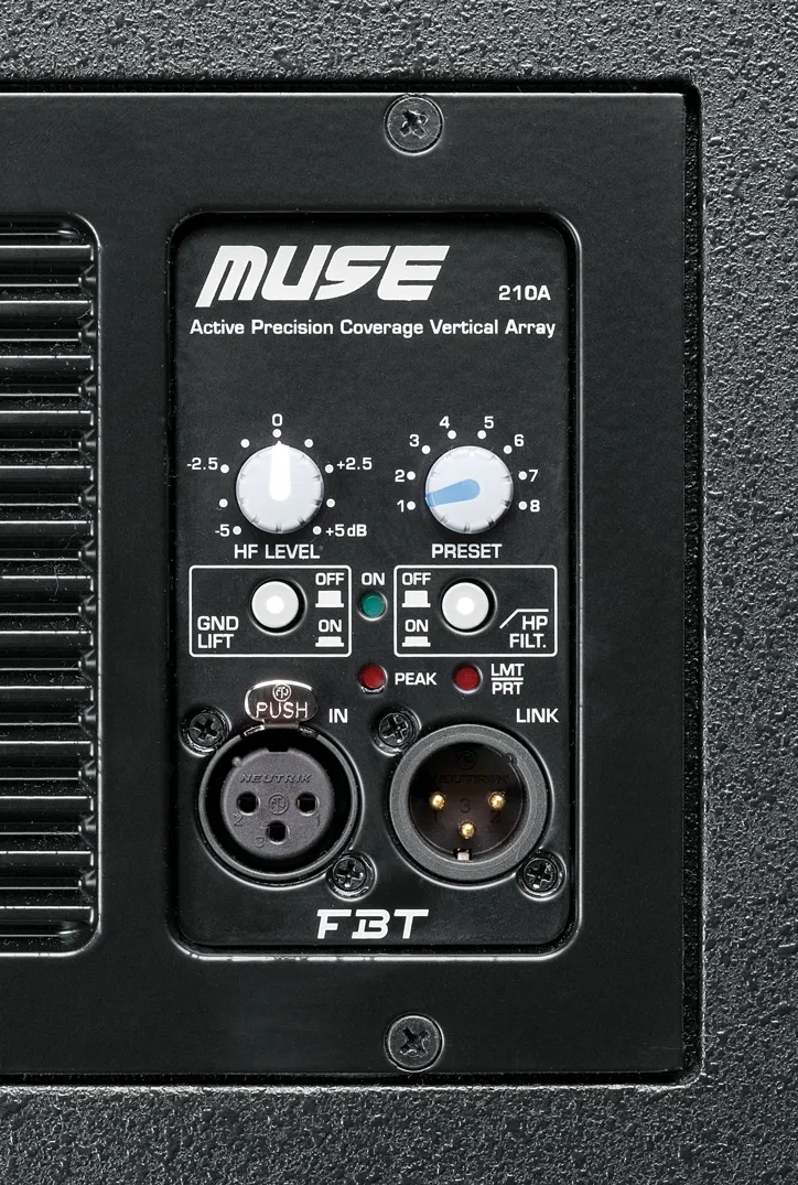Линейный массив FBT MUSE 210LA — это активная акустическая система с передовыми технологиями звукоусиления. Оснащён двумя 10-дюймовыми динамиками и двумя ВЧ-драйверами B&C Speakers. Имеет встроенный сигнальный процессор с 8 пресетами для оптимизации звучания. Мощность: 600W + 300W RMS. Частотный диапазон: 55–20000 Гц. Разъёмы: XLR. Материал корпуса: берёзовая фанера. Габариты: 713x296x425 мм. Вес: 38,2 кг. Цвет: чёрный. Производство: Италия.