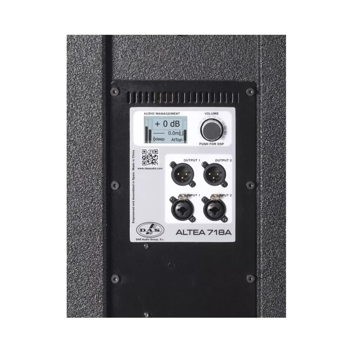 DAS Audio Altea-718ADAS Audio Altea-718A — активный сабвуфер, разработанный для высококачественного воспроизведения низких частот. Оснащён 18-дюймовым динамиком DAS 18FW с оптимизированной конструкцией FEM и 3-дюймовой звуковой катушкой. Система охлаждения включает вентилируемый полюсной наконечник и отверстия на задней панели. Ультрасовременный усилитель класса D мощностью 1200 Вт обеспечивает высокую эффективность. На задней панели расположены симметричные входные разъёмы и стереофонические разъёмы «loop thru» для подключения к спутниковым системам ALTEA.