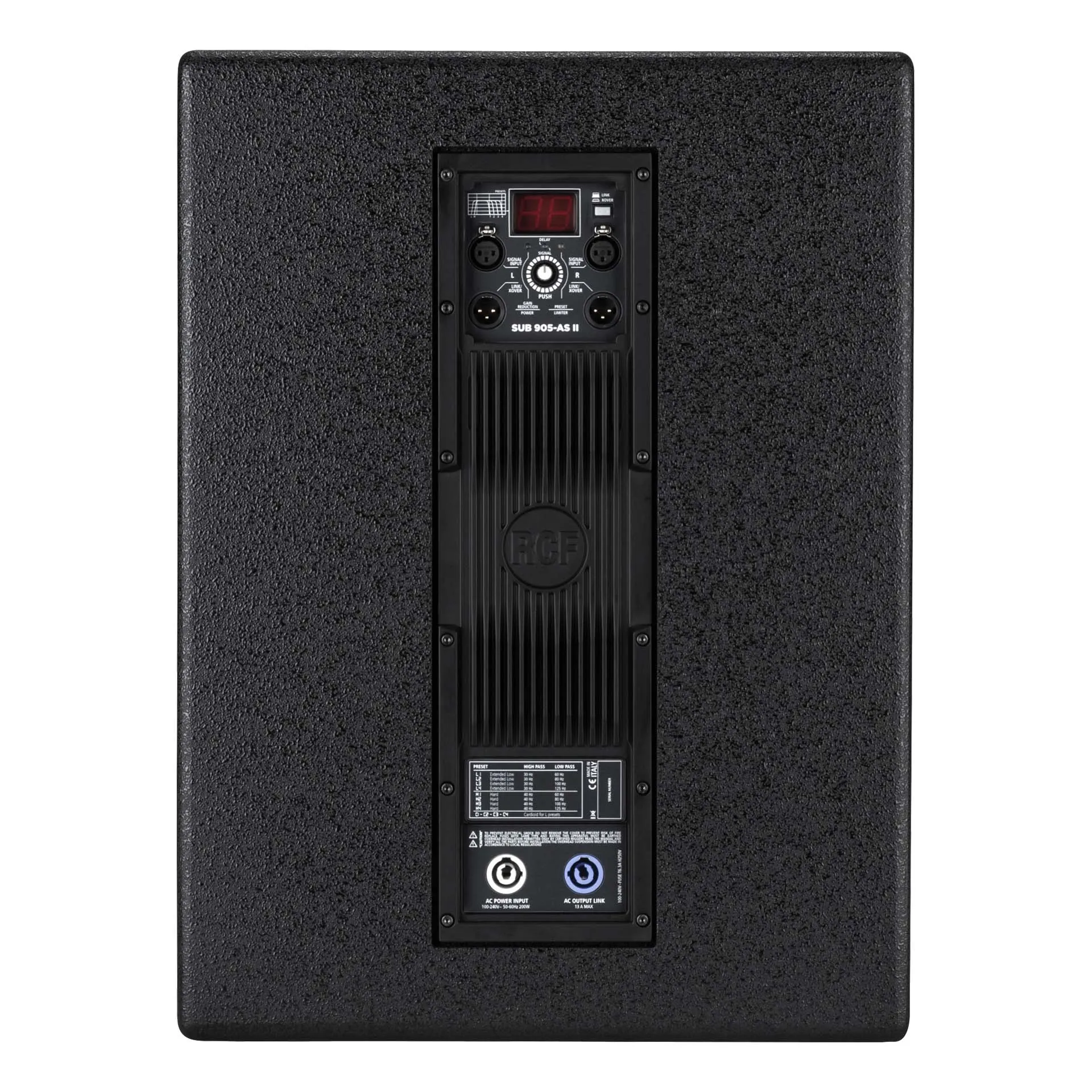Активный сабвуфер RCF SUB 905-AS II (13000434) – компактное устройство с мощным звуком. Оснащён цифровым усилителем 2200 Вт и передовой технологией сабвуфера RCF. Отлично подходит для мобильных систем диджеев.