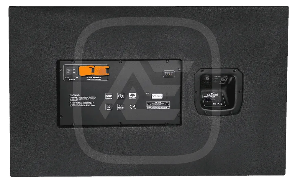 Активный сабвуфер AdMark LA310S — модель класса D с DSP и усилителем. Оснащён динамиками 2X18", поддерживает частоту 40 Гц—130 Гц (±3 дБ). Чувствительность — 108 дБ, SPL — 138 дБ.