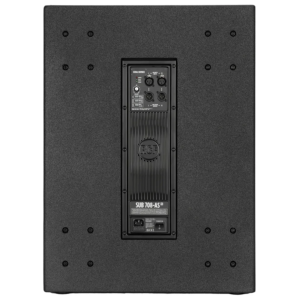 RCF SUB 708-AS MK3 – 18" активный сабвуфер высокой мощности для живых выступлений. Оснащен современным излучателем с мощным керамическим магнитопроводом и мощным усилителем D-класса, обеспечивающим уровень звукового давления до 133 дБ с исключительным запасом по громкости. Спроектированный как идеальное дополнение к 12'' или 15'' акустическим системам, он обеспечивает превосходные характеристики в любой области применения. На задней панели расположены регуляторы громкости, эквалайзера, полярности, задержки и выбора частоты кроссовера. Прочный цельнодеревянный корпус с полимочевинным покрытием, устойчивым к царапинам, делает его долговечным, удобным для транспортировки и надежным для установки. Благодаря своей универсальности, качеству звучания и высокой выходной мощности SUB 708-AS MK3 идеально подходит для малых и средних площадок и мобильного использования.