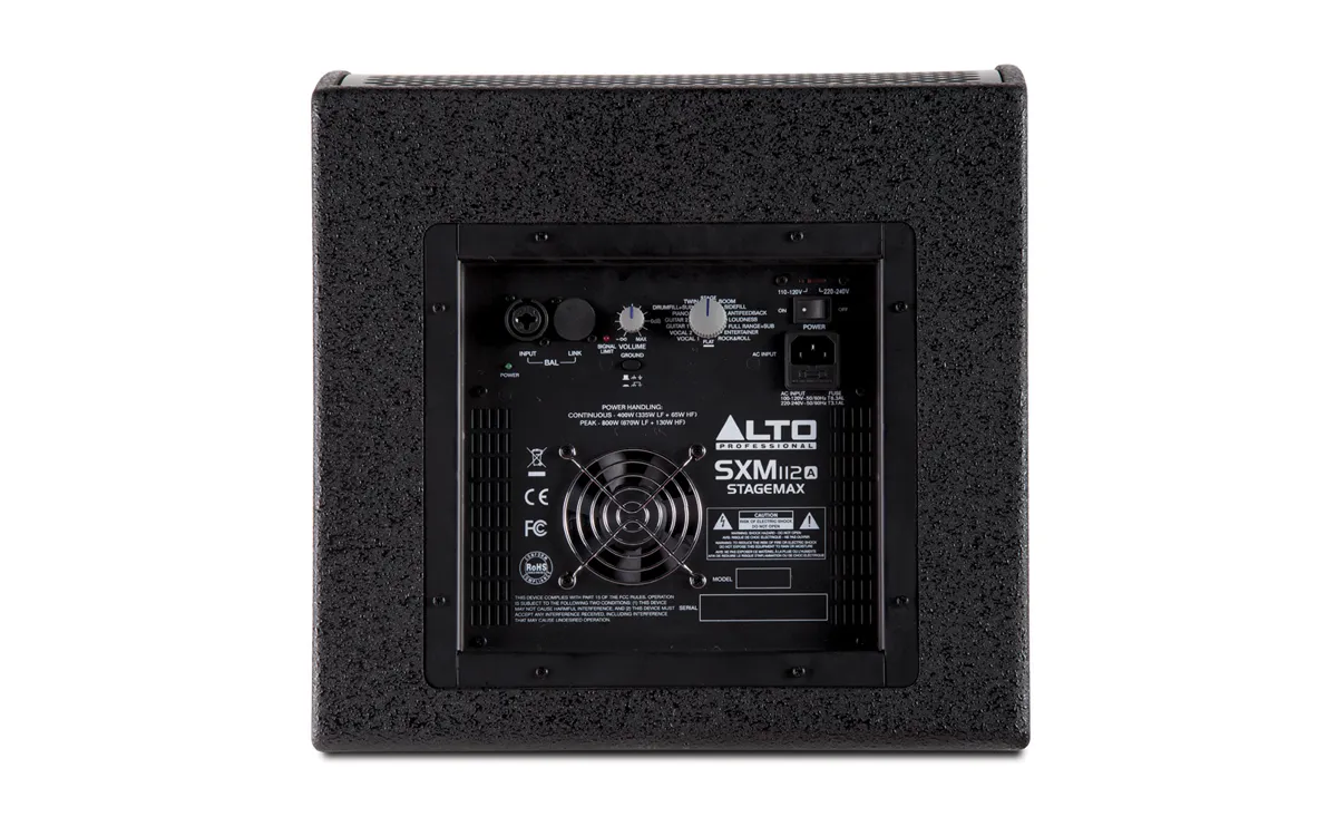 Alto SXM112A — активная акустическая система для сценического мониторинга. Она оснащена 12-дюймовым низкочастотным и 1-дюймовым высокочастотным излучателями. Мощность — 400 Вт в непрерывном режиме и 800 Вт в пиковом. Доступно 16 пресетов для моделирования звучания разных акустических систем.