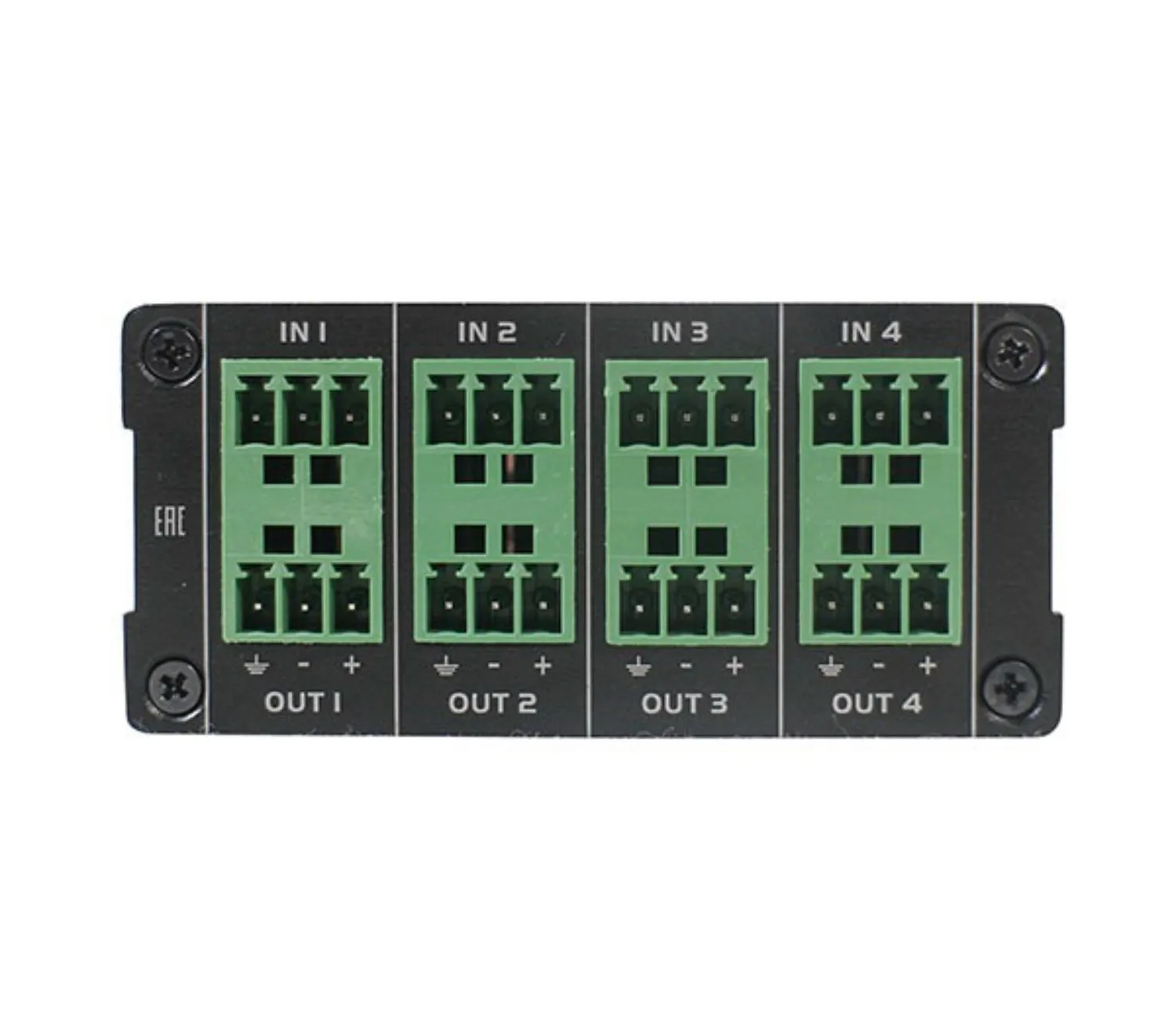 - Особенности: количество каналов — 8 шт (вход балансный 4 Phoenix, выход балансный 4 Phoenix)