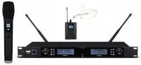 Комплект состоит из одного ручного микрофона, одного головного микрофона и поясного передатчика. Благодаря использованию высококачественных компонентов и частотных фильтров, данный комплект не уступает по своим характеристикам дорогим аналогам европейских производителей. Благодаря использованию современных технологий модель характеризуется высокой производительностью и надежностью. С помощью системы шумоподавления Pilot Tone & Noise Mute микрофон имеет качественное шумоподавление и четко передает звучание голоса. Встроенный сканер частот на 200 каналов, позволяет одновременно применять до 20 систем на одной площадке без помех и пересечений сигнала.