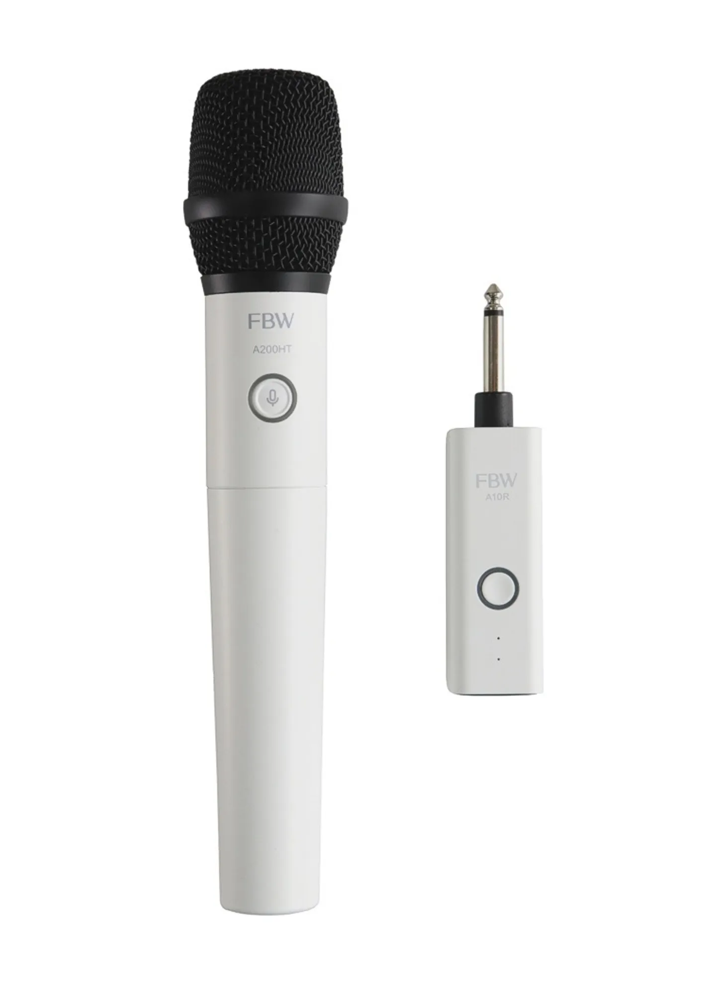 Накамерная радиосистема FBW A10: ручной передатчик A200HT и миниприёмник. Частотный диапазон 512–537 МГц, FM-модуляция, мощность до 50 мВт. Передатчик A200HT работает в диапазоне 470–960 МГц, имеет 100 фиксированных частот, выход не менее 13 дБ. Батарея: 2x1.5 В (AA), время работы более 8 часов. Габариты: 240x48 мм, вес: 200 г.