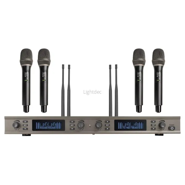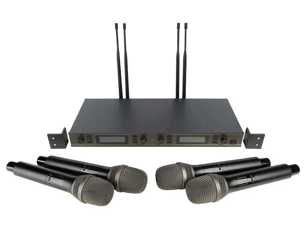 Радиосистема AXELVOX DX800FC — профессиональная 4-канальная беспроводная система с DSP. Включает 4 микрофона и приёмник. Находит свободные частоты в диапазоне 650–758 МГц. Особенности: цифровая модуляция, быстрая синхронизация, простое управление. Алюминиевый корпус, LCD-дисплей. Время работы от батареек АА — до 8 часов.