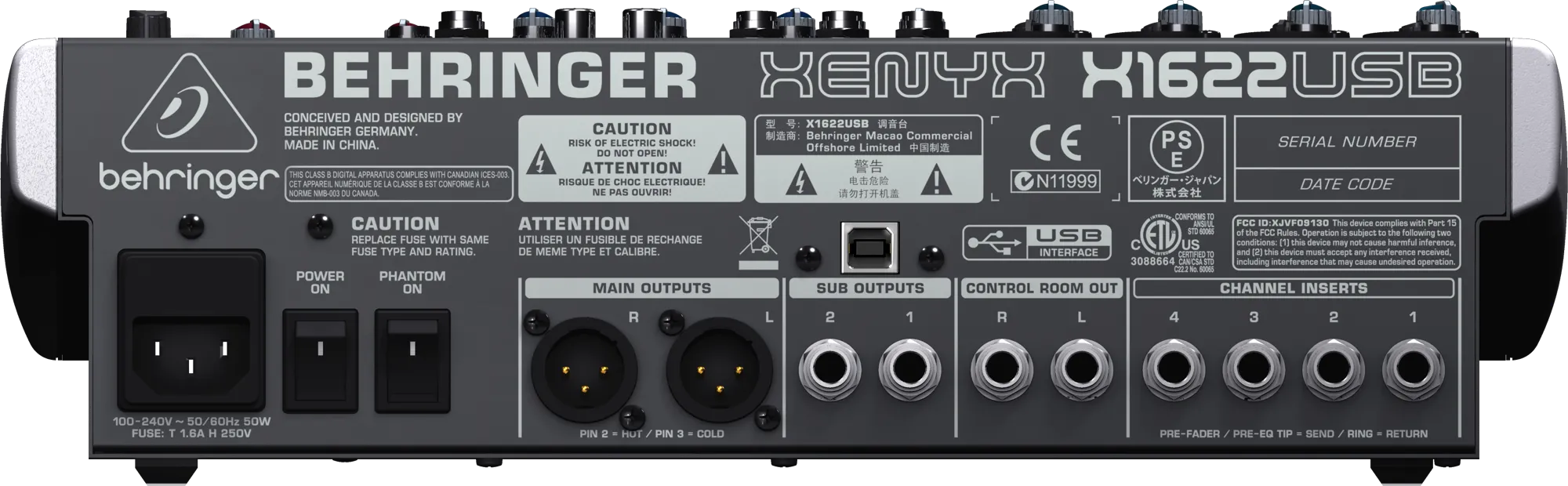 Технические характеристики микшера Behringer X1622USB