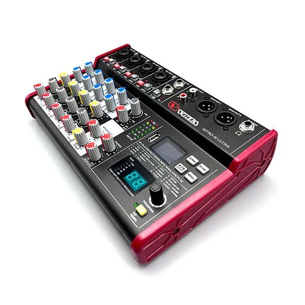 Компактный микшерный пульт с многоформатным аудиоплеером и цифровым процессором эффектов.Компактный микшерный пульт INTRO 41 ULTRA предназначен для использования в небольших звукоусилительных комплектах для смешения сигналов от различных источников, например, микрофонов или музыкальных инструментов.