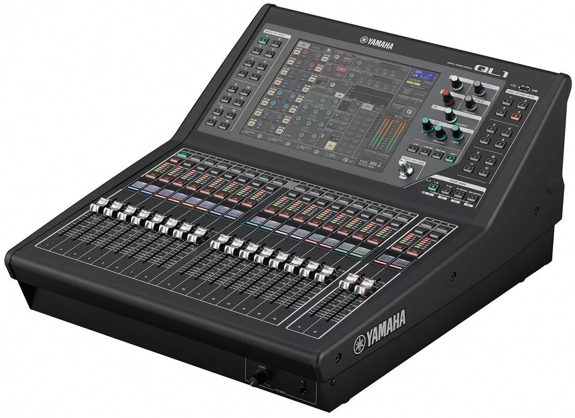Yamaha QL1 — новый микшерный пульт от Yamaha. Это компактная консоль с полным спектром средств для микширования, обработки и маршрутизации живого звука для малых и средних мероприятий. Она имеет 32 моно и 8 стерео каналов для микширования, 16 микшинговых и 8 матричных выходов. У пульта 16 микрофонных/линейных входов и 8 аналоговых Omni выходов.