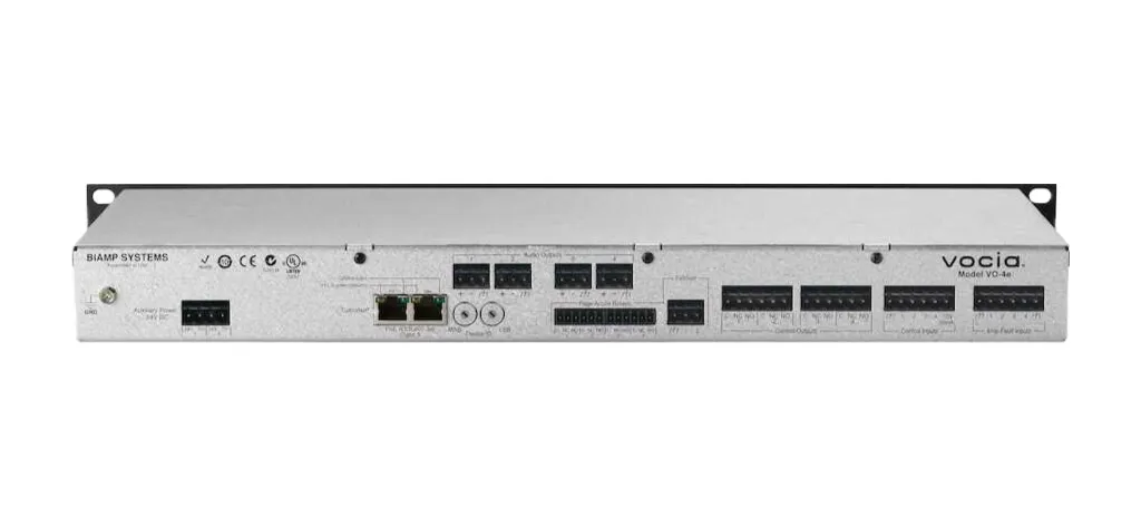 Biamp Vocia VO-4e — это сетевое аудиоустройство с четырьмя каналами. Оно предназначено для создания системы оповещения и распределения аудиосигнала.