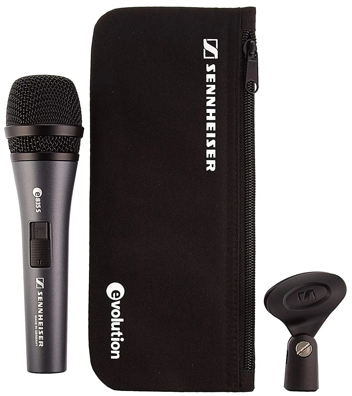 Динамический микрофон для сцены для вокала. Оптимизирован для высокого давления. Защищён от обратной связи и нежелательных звуков. Есть антишоковая подвеска, защита от помех и бесшумный выключатель (для e 835-S).