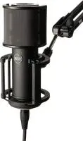 Микрофон имеет кардиоидную диаграмму направленности, которая игнорирует окружающий шум. В комплекте идёт поп-фильтр и низкопрофильный держатель типа «паук», которые снижают вибрации и грохот.