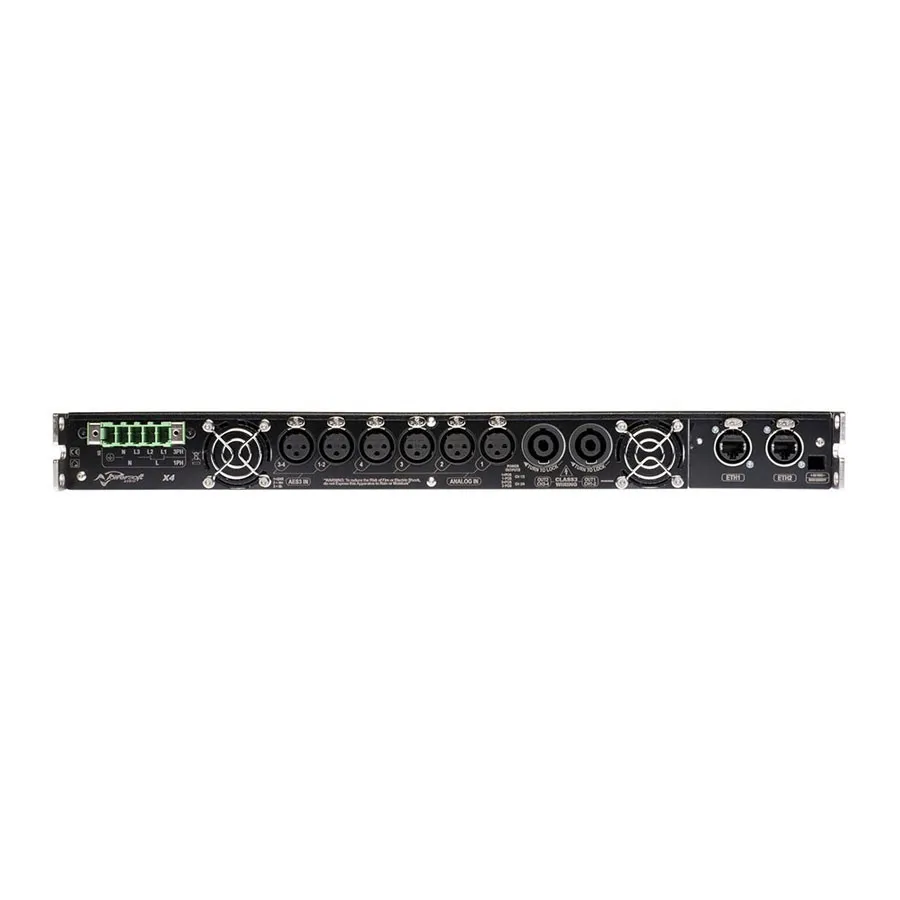 Powersoft X4 DSP+ETH — это четырёхканальный усилитель с продвинутой аудиообработкой. Управляется через ARM Cortex A-8 и TI C6000 DSP. Поддерживает различные кроссоверы и фильтры. Есть возможность дистанционного управления через Armonia. Оснащён системами TruePower и Active DampingControl. Питание от 85 В до 440 В переменного тока. Модульная система позволяет изменять конфигурацию задней панели.