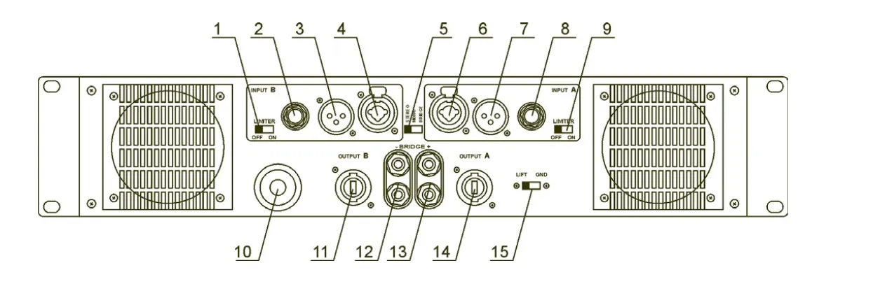 Усилитель выполнен в 2U корпусе и устанавливается в стандартные 19" рэковые стойки.